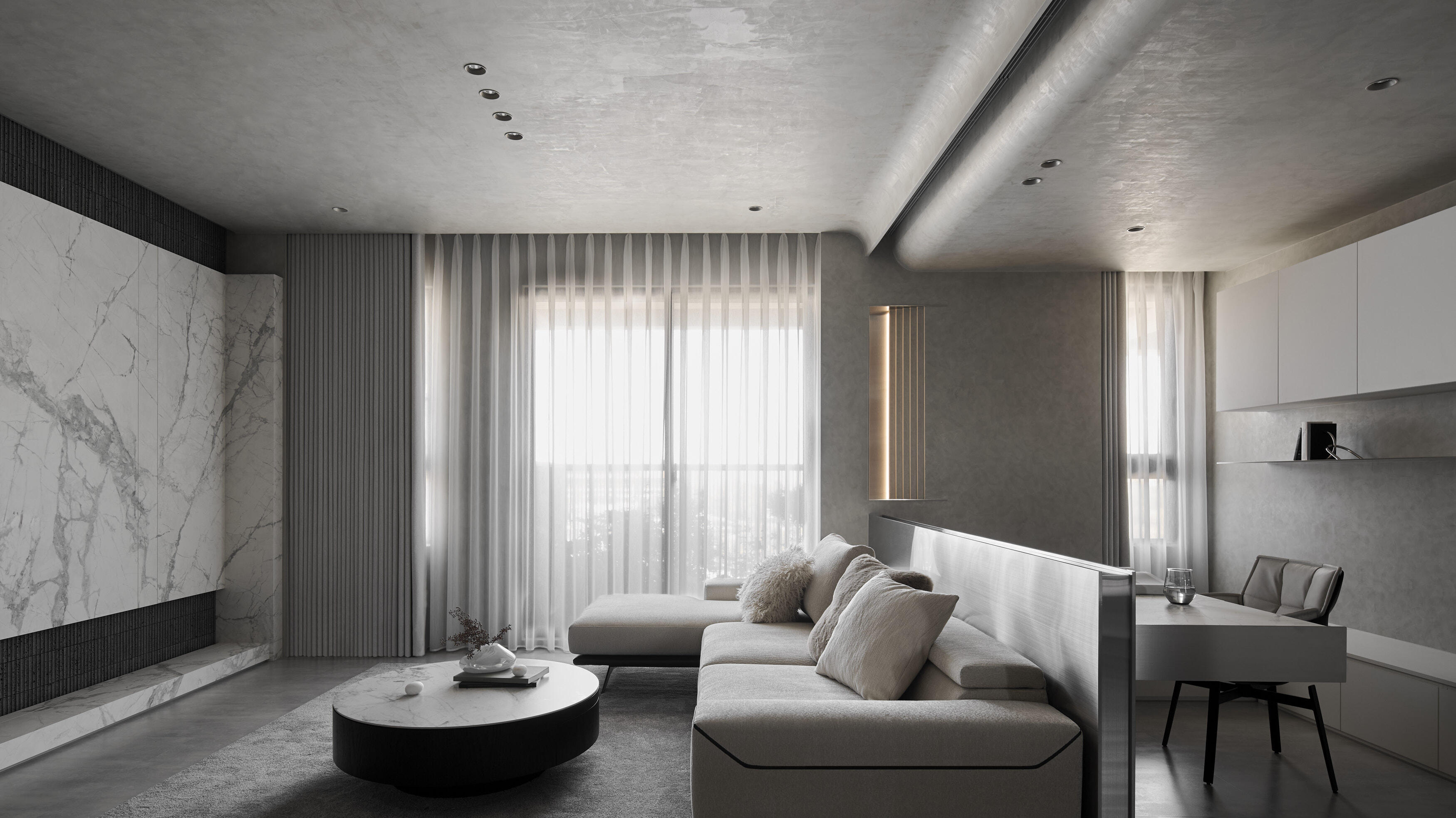 家,從來就不只是一個住所,更是安放身心、靜享歲月美好的專屬場域。大面積的灰色塗料如輕柔的薄霧,為空間暈染出沉靜而內斂的氛圍,每一次歸家,都是一場與自我對話的序曲。
