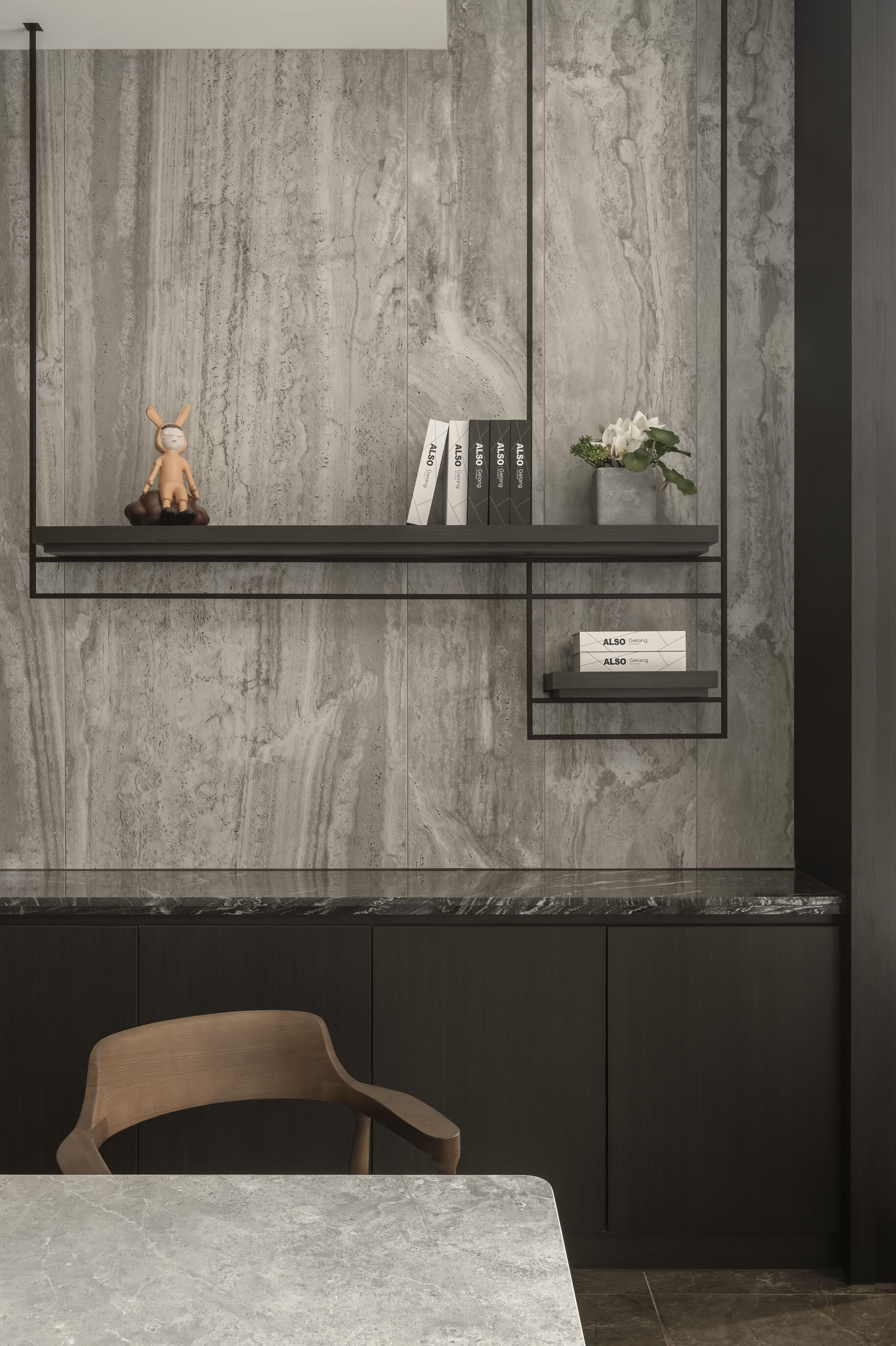 整體色彩以溫潤而淡雅的基調鋪陳,不張揚,卻層次分明。木皮的溫度、金屬的俐落、石紋的沉著,透過材質間的相互對話,形塑豐富而細膩的視覺表情。隨著光影在不同時辰流轉,空間亦展現出多變而耐人尋味的樣貌。