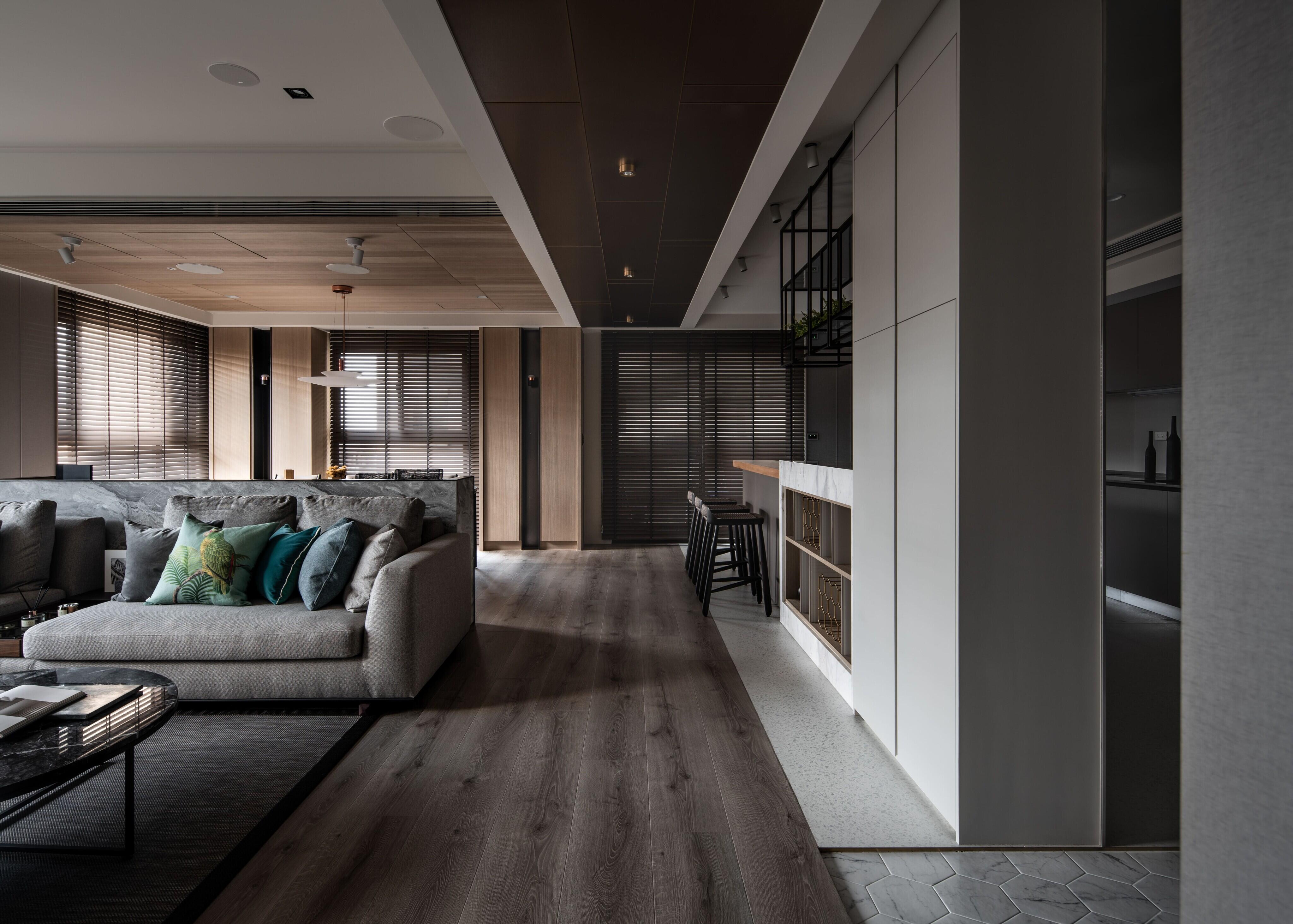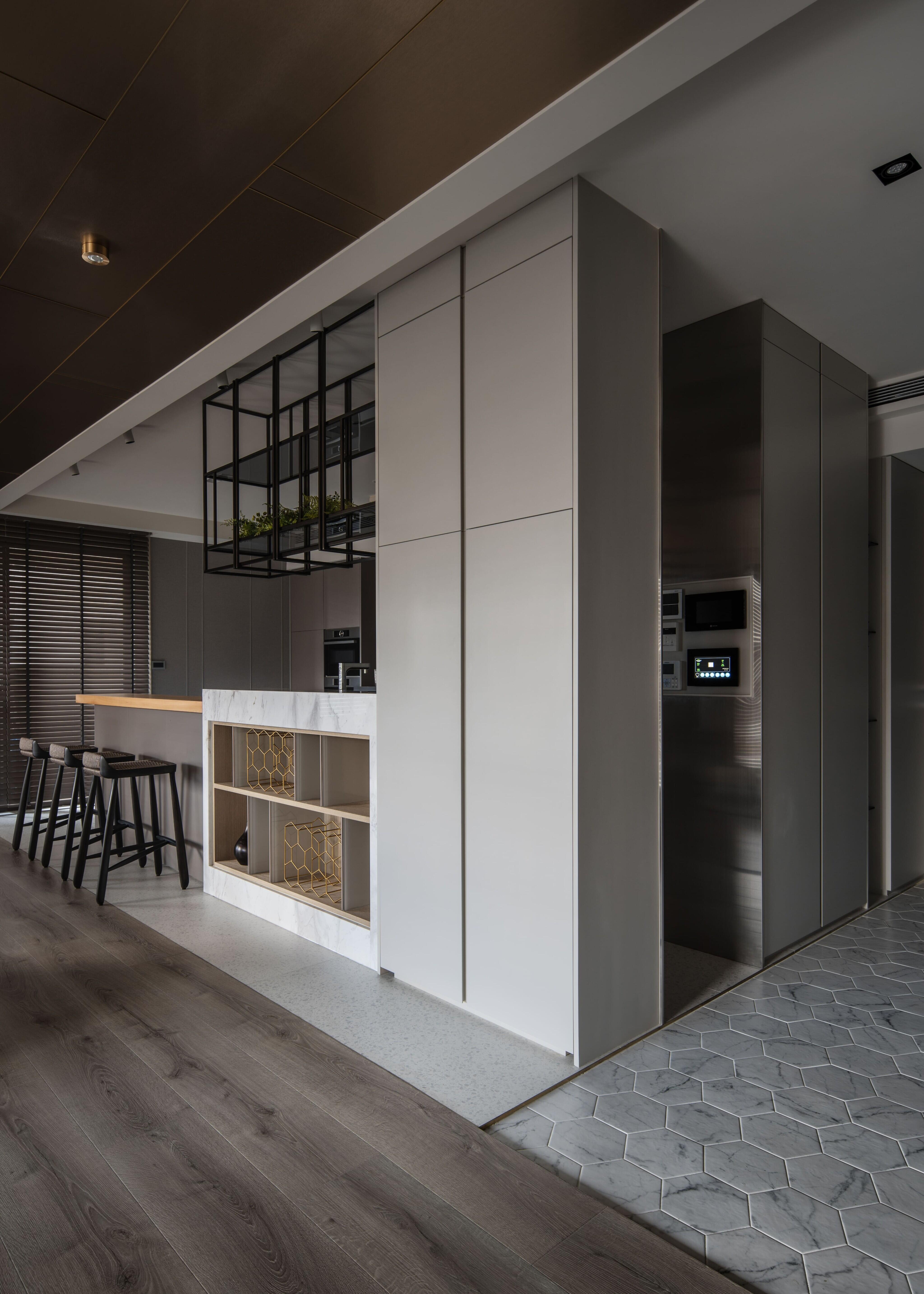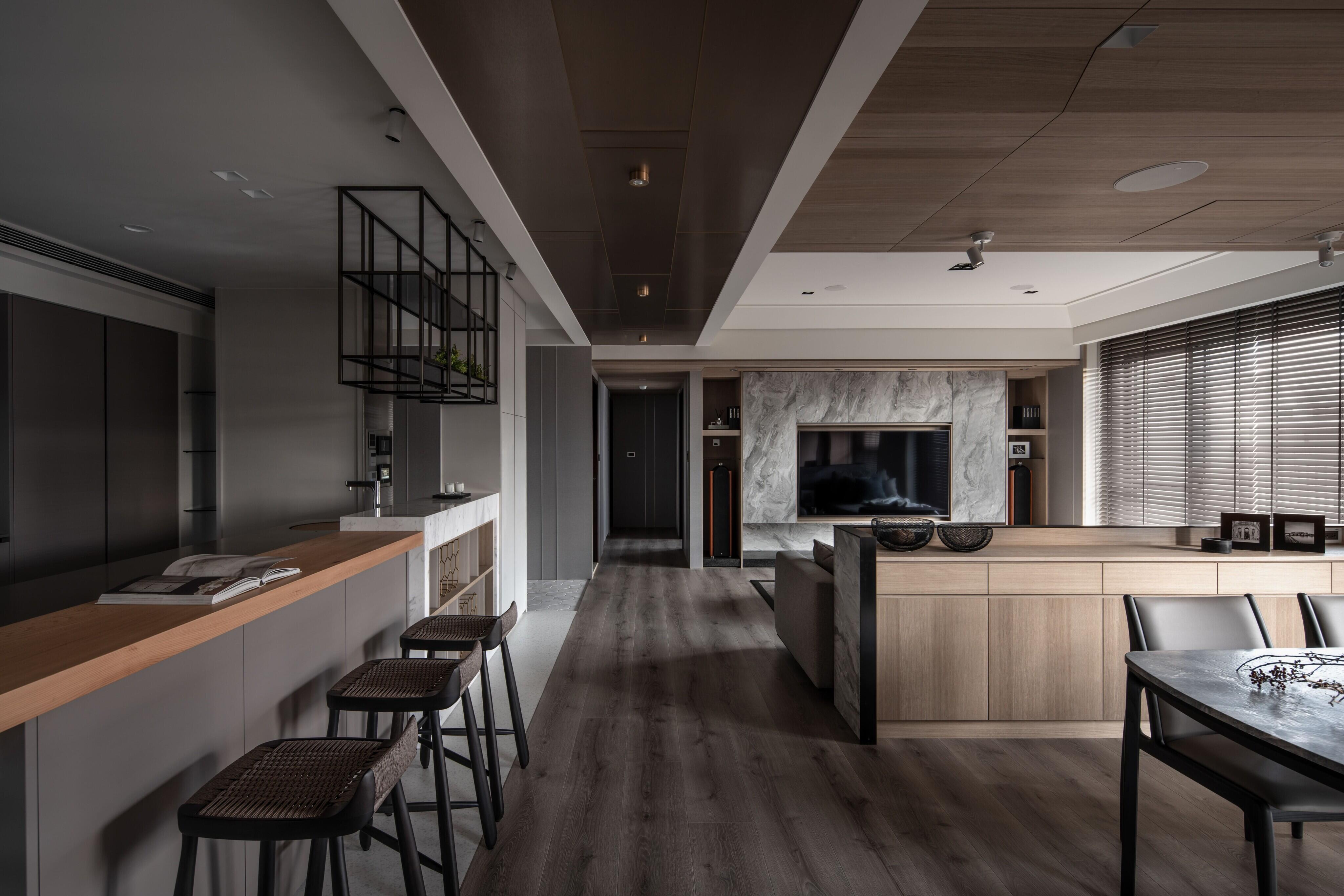 色彩與材質的運用,更是空間表情的靈魂所在。客廳以優雅的灰白色調鋪陳,渲染出無限的優雅風範,讓人心境隨之沉澱;轉身來到餐廳,溫潤的木質肌理烘托出和煦的舒適自在,營造出溫馨的用餐氛圍;而廚房則以黑灰主調點綴鐵件元素,豐富了空間的個性表情,兼具實用與美學,藉由不同材質肌理的細緻對比,創造出豐富而和諧的層次感。