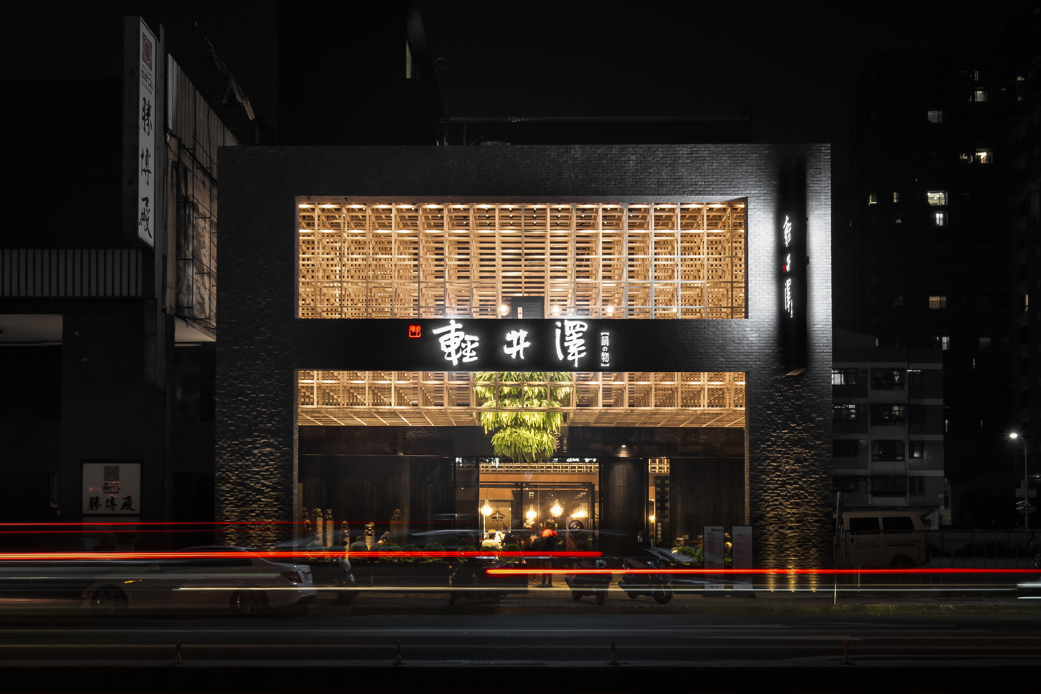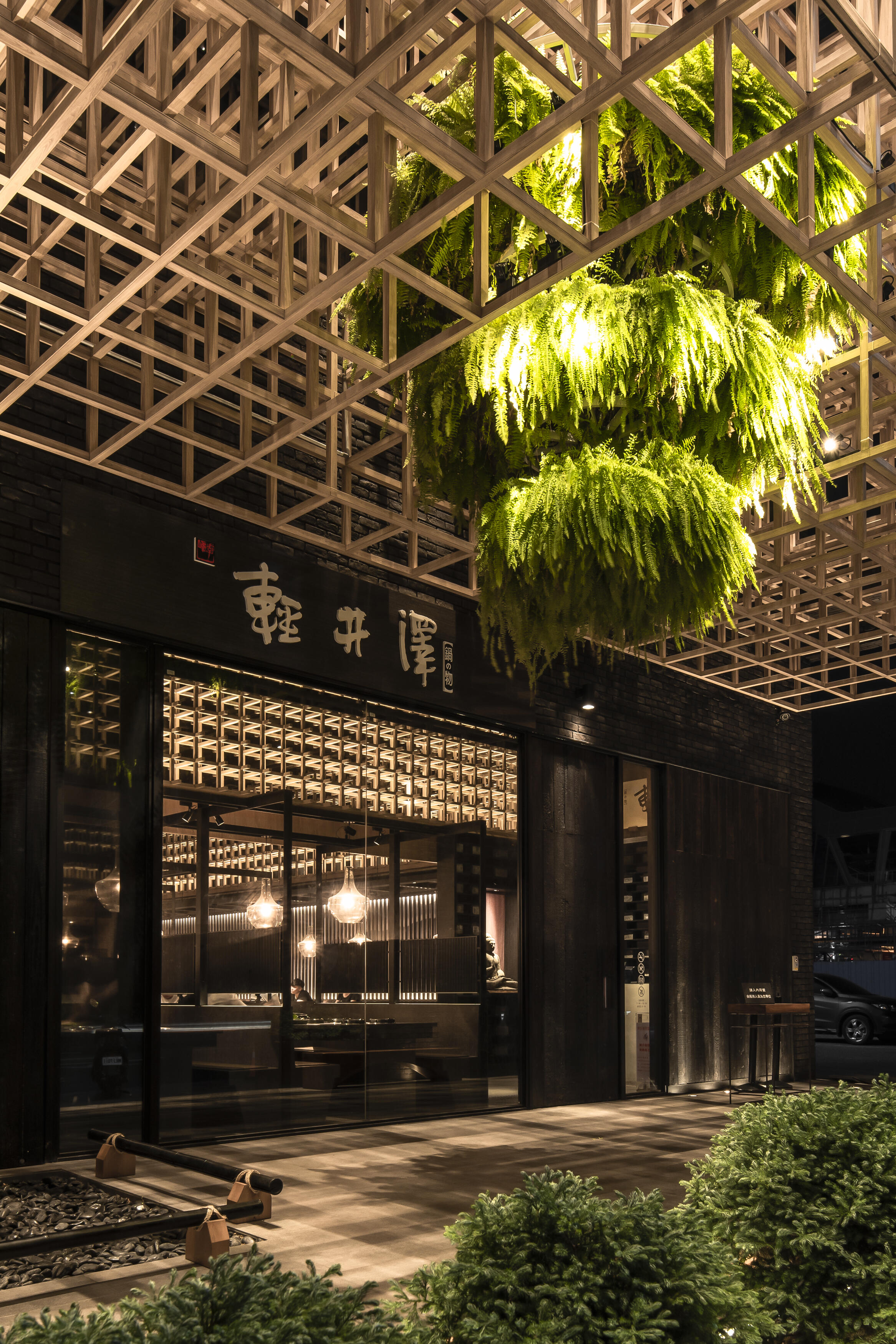 輕井澤火鍋店其設計理念旨在打破室內外的界限,將用餐從單純的飽足昇華為一場身心靈的療癒之旅。設計師巧妙地運用木、石、影、綠等自然元素,以「借景」的方式讓視覺流動,創造出氣韻流動的通透感。