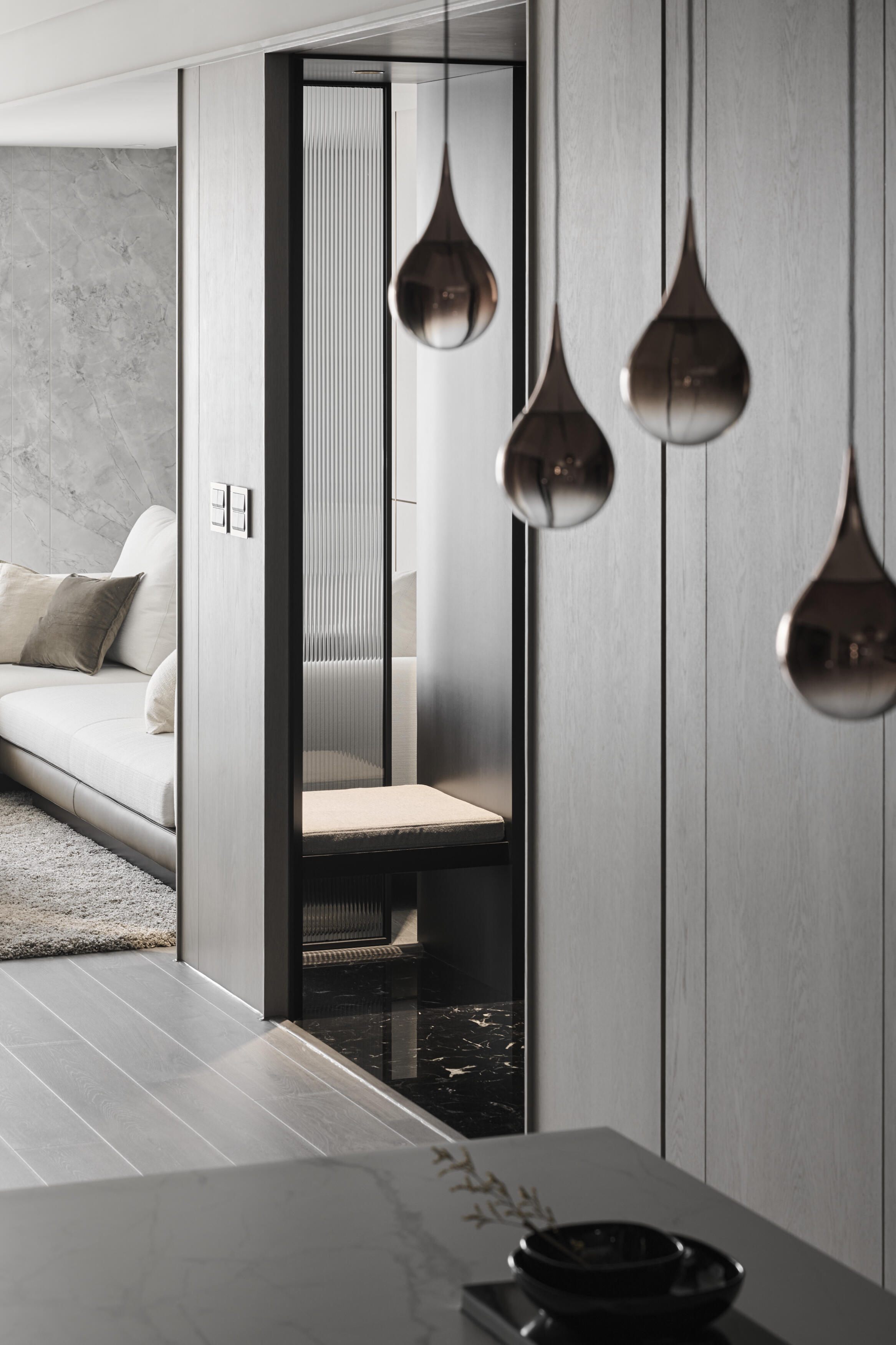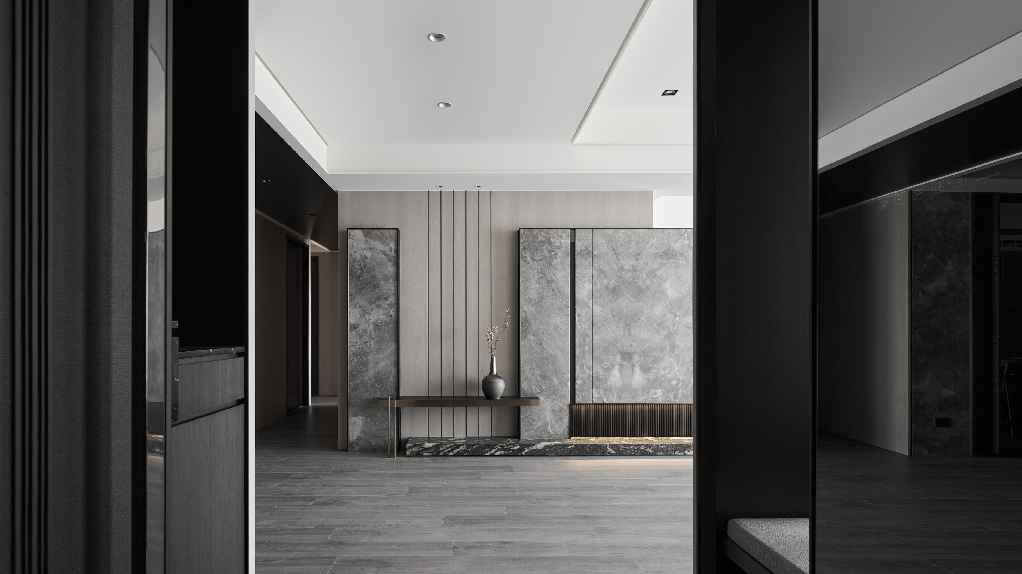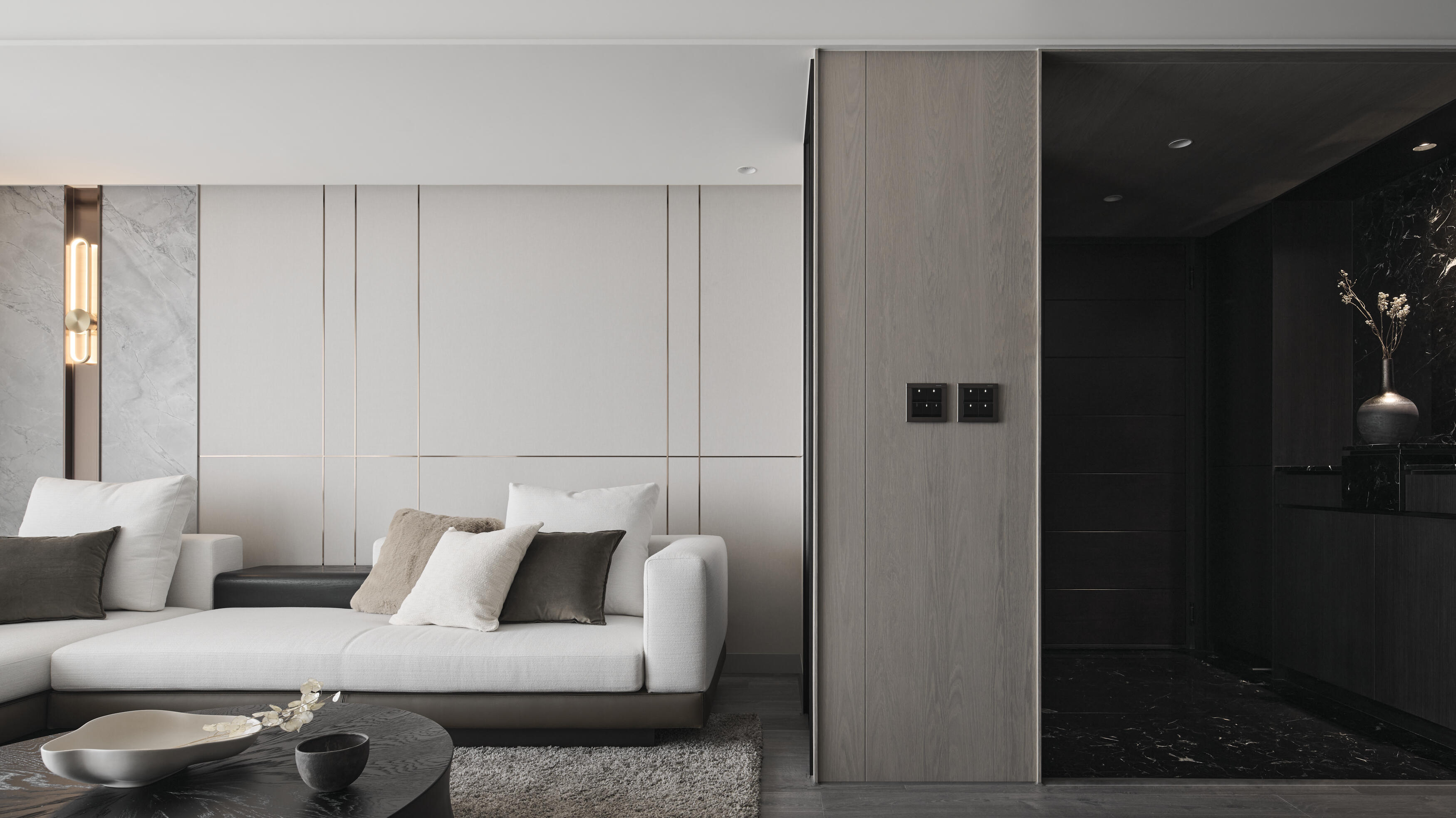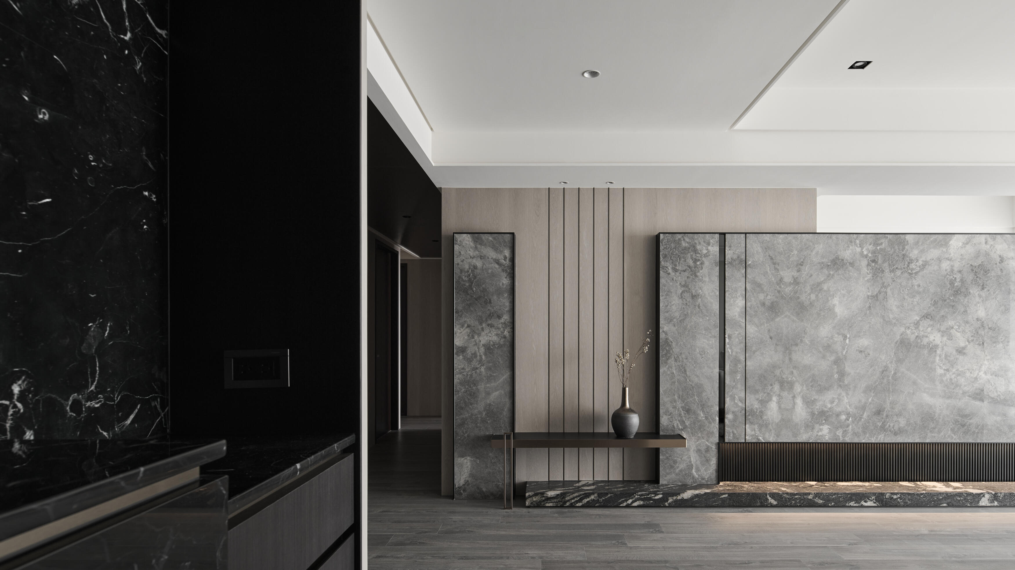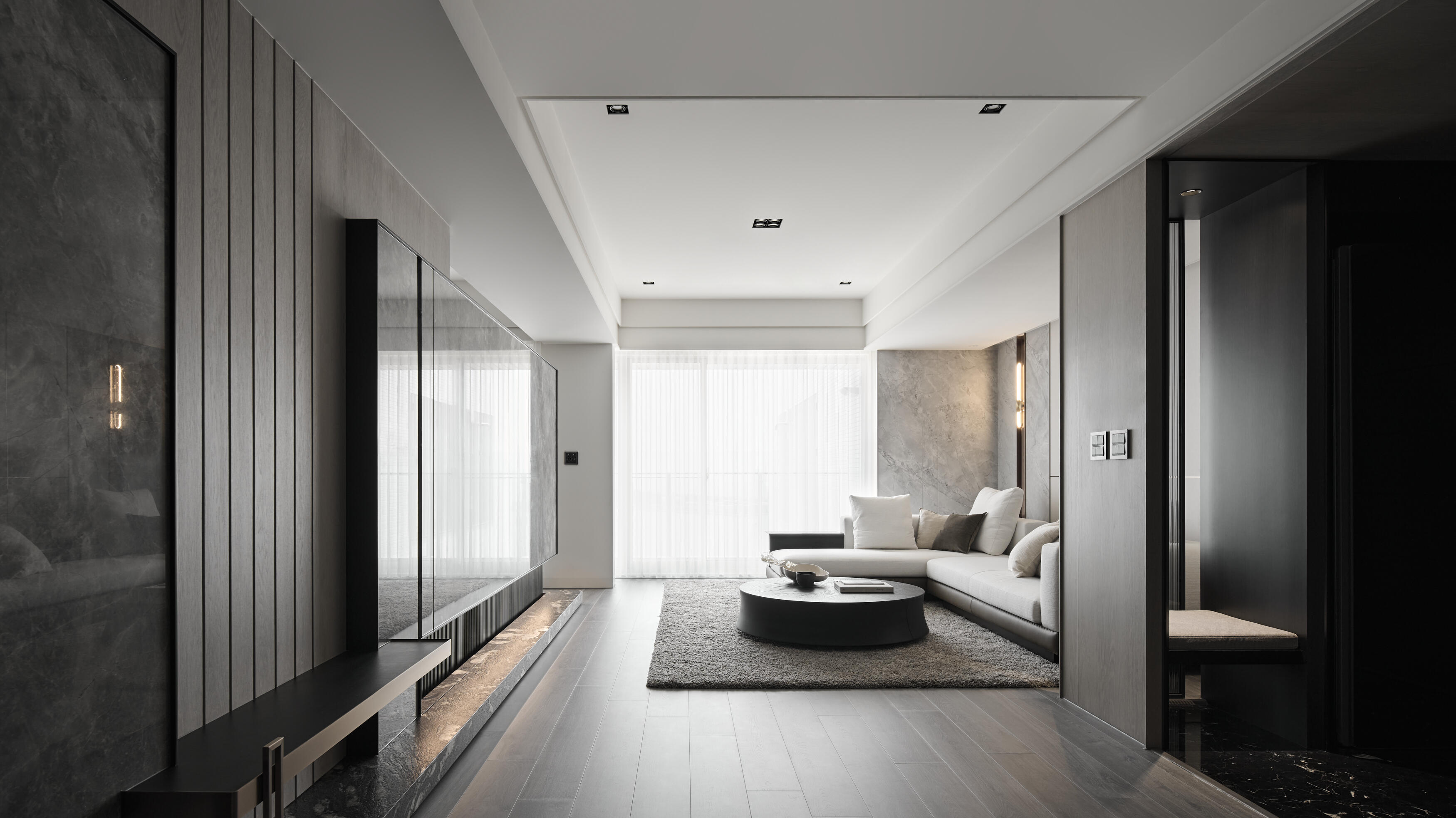粼粼波光在陽光下閃耀,構成一幅寧靜而美好的畫面。座落於安平海港周邊一棟高樓層建築,本次設計以大地色系作為空間基底,局部點綴黑、白、灰等中性色調,營造含蓄內斂的空間格調,與窗外一望無際的碧海藍天相互呼應,將戶外美景自然地攬入室內。