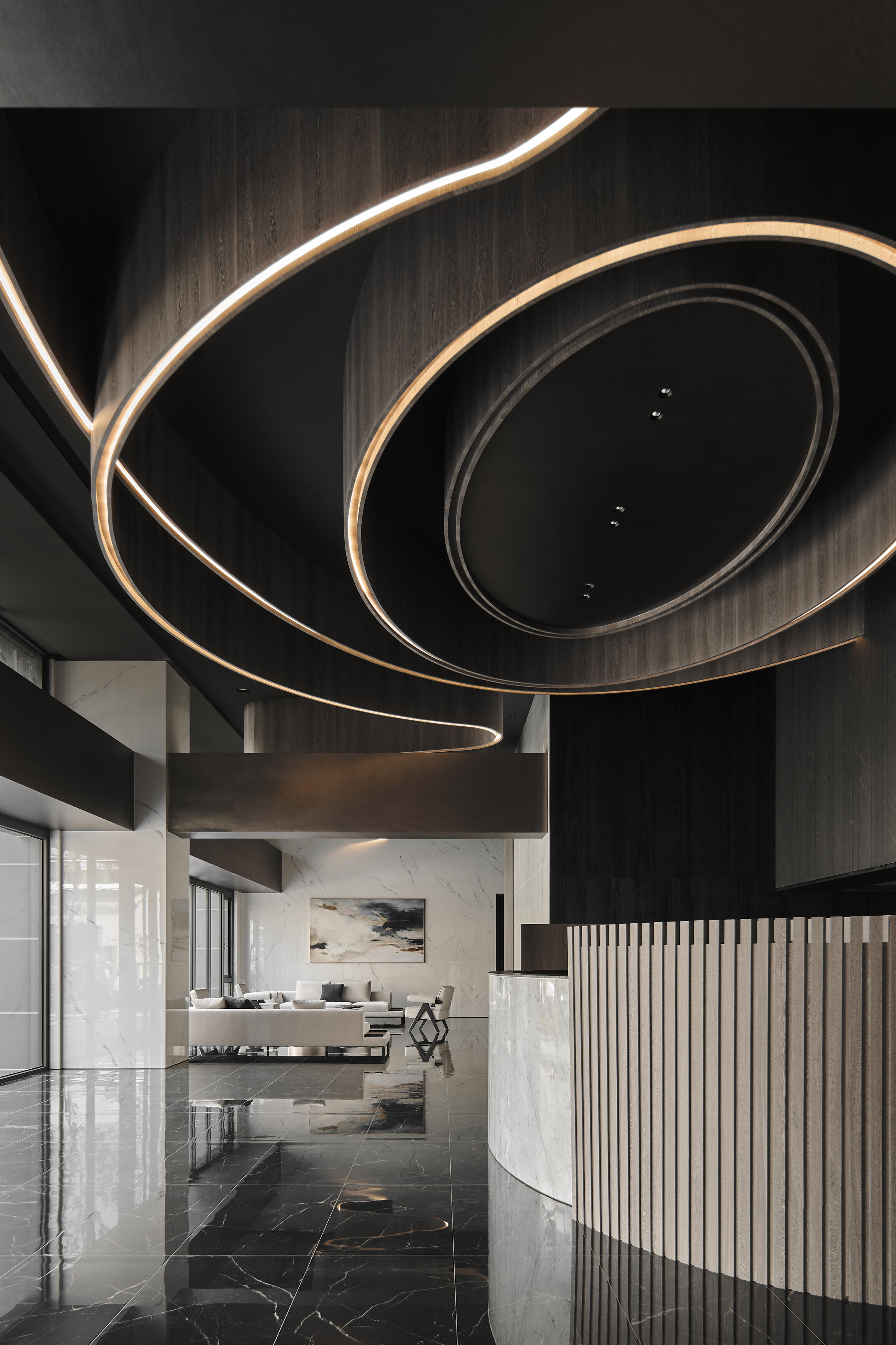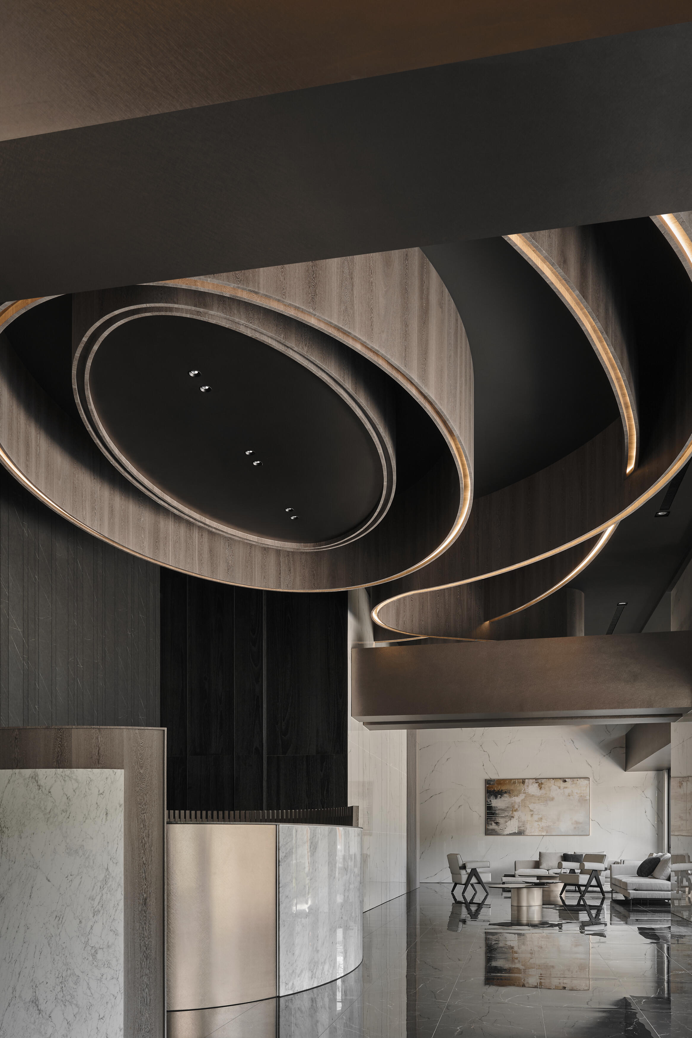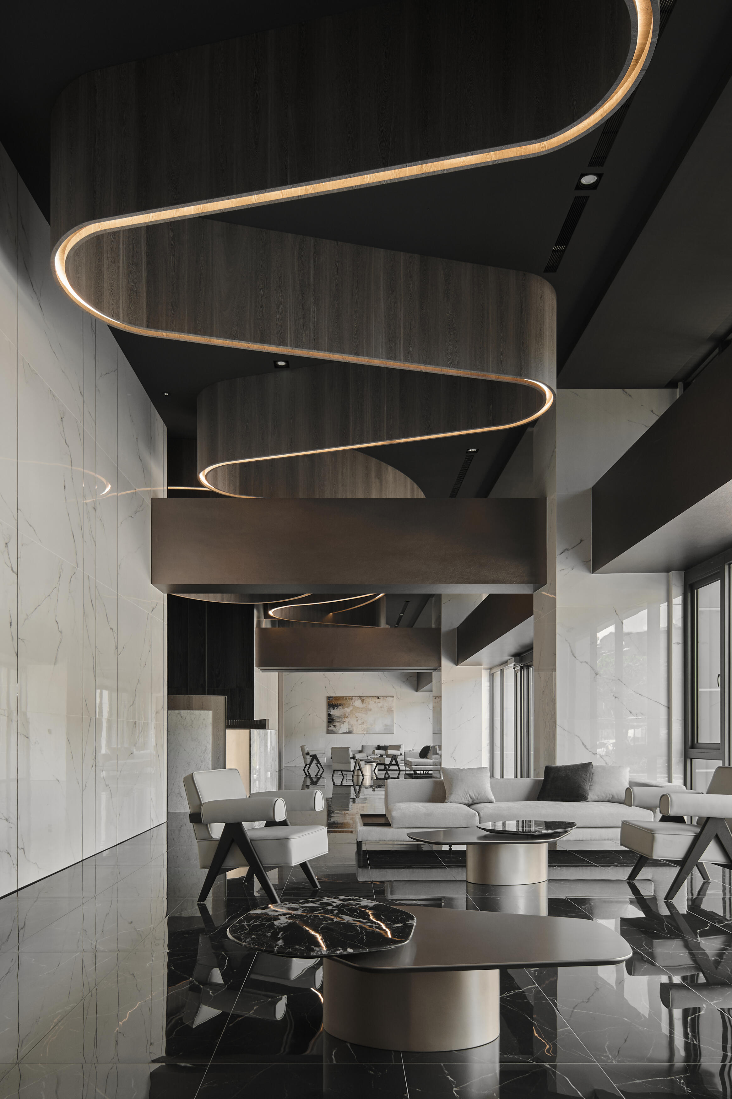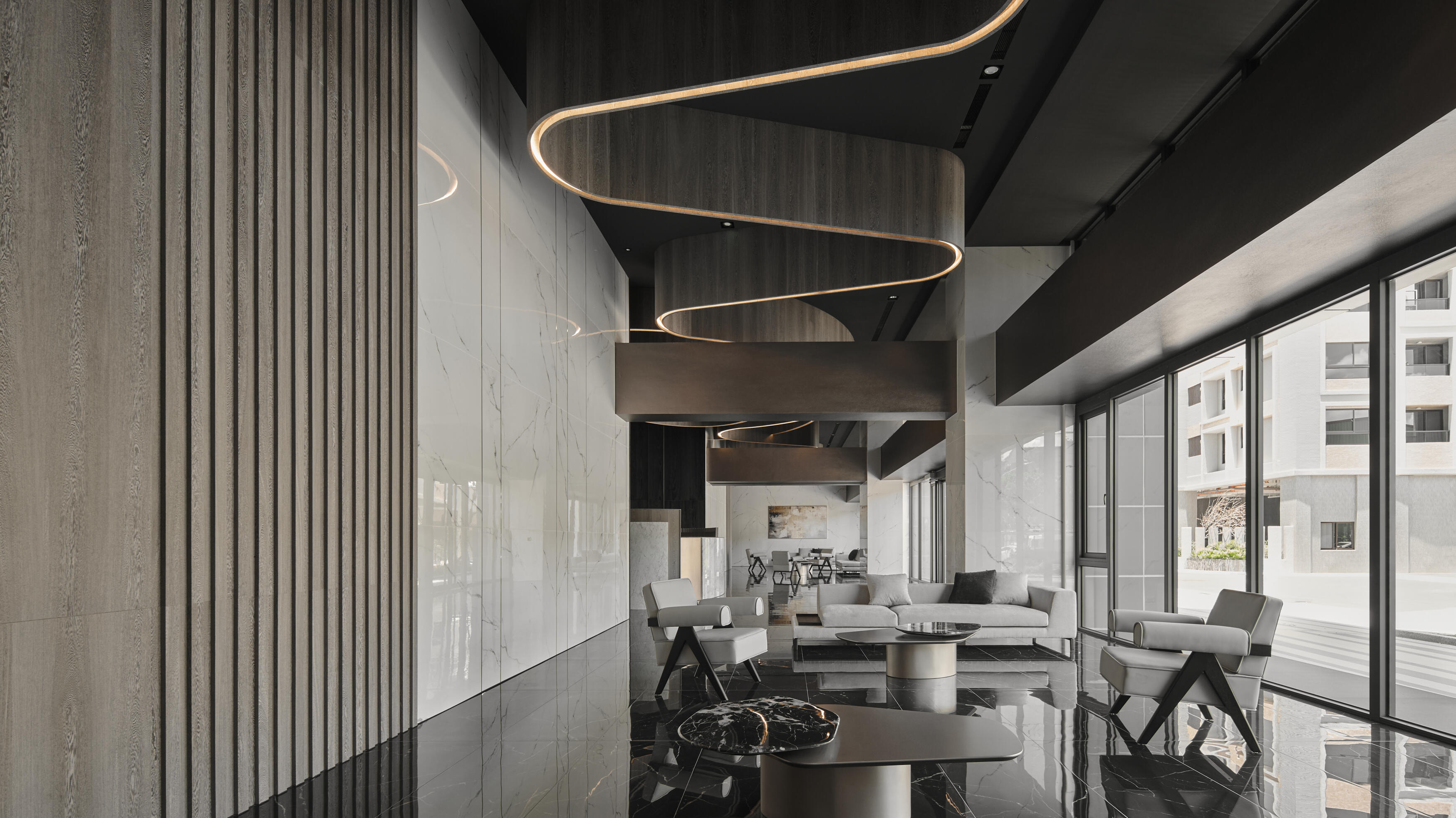 公設設計不僅是建築的門面,更是居住者相聚交流使用的場所,透過設計的巧思與得宜的動線安排,能為公共空間創造更高的價值,同時為住戶提升生活品質。我們以大自然為靈感,利用水、木、石等三種天然元素,精粹其曲柔、溫潤、質樸的意象,透過材質與形態,轉化為實體空間。
