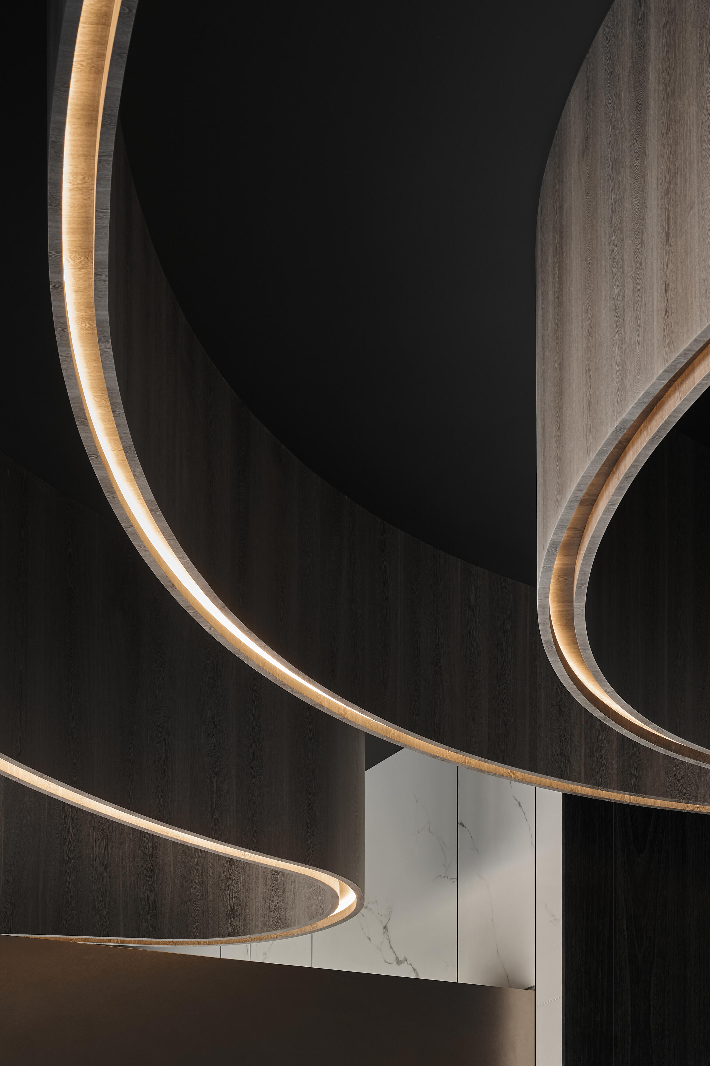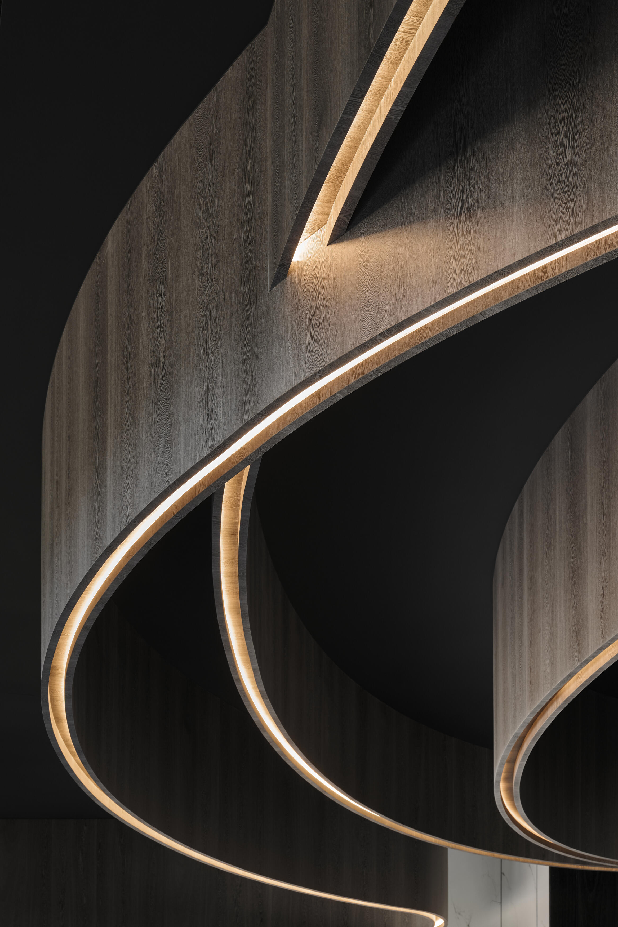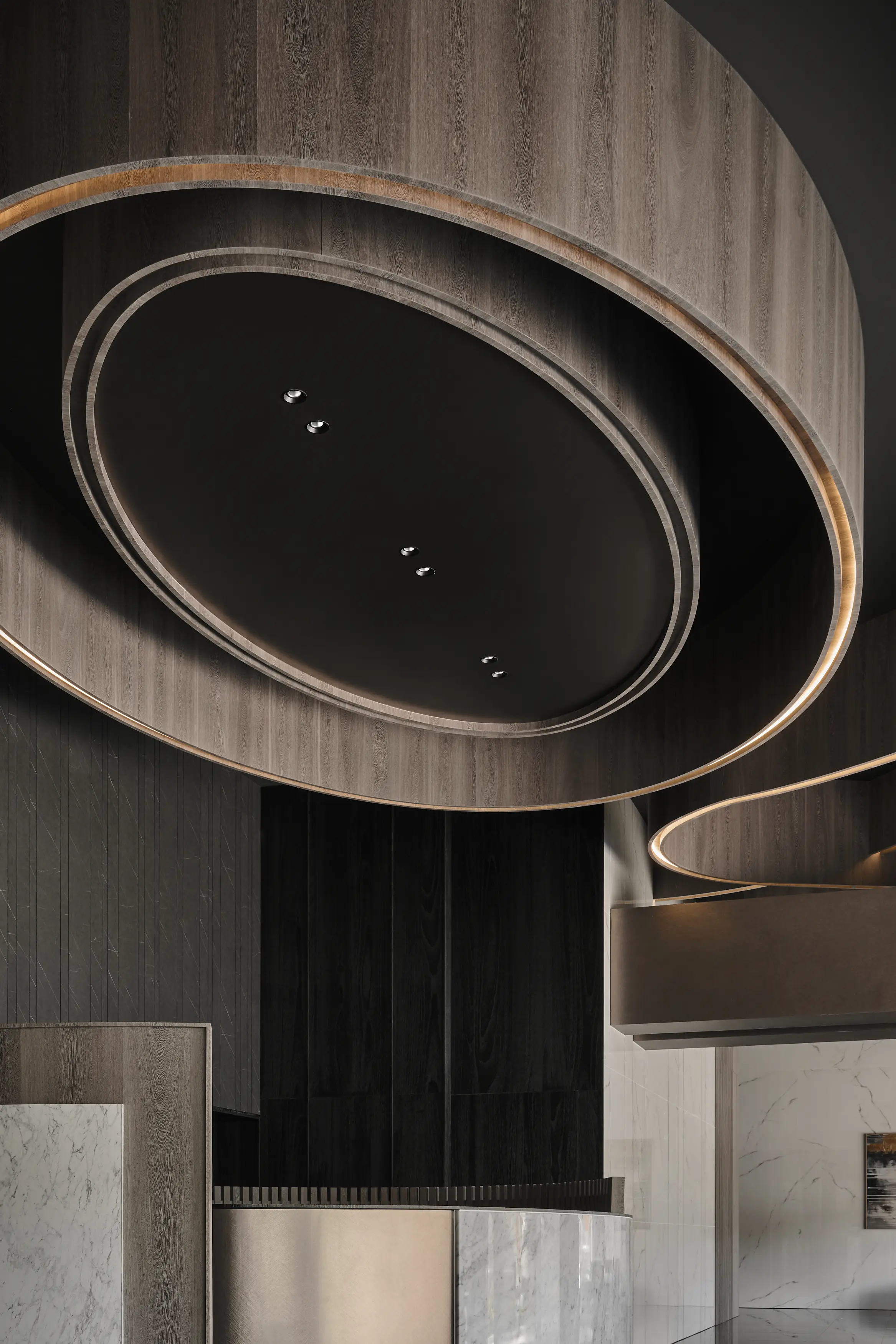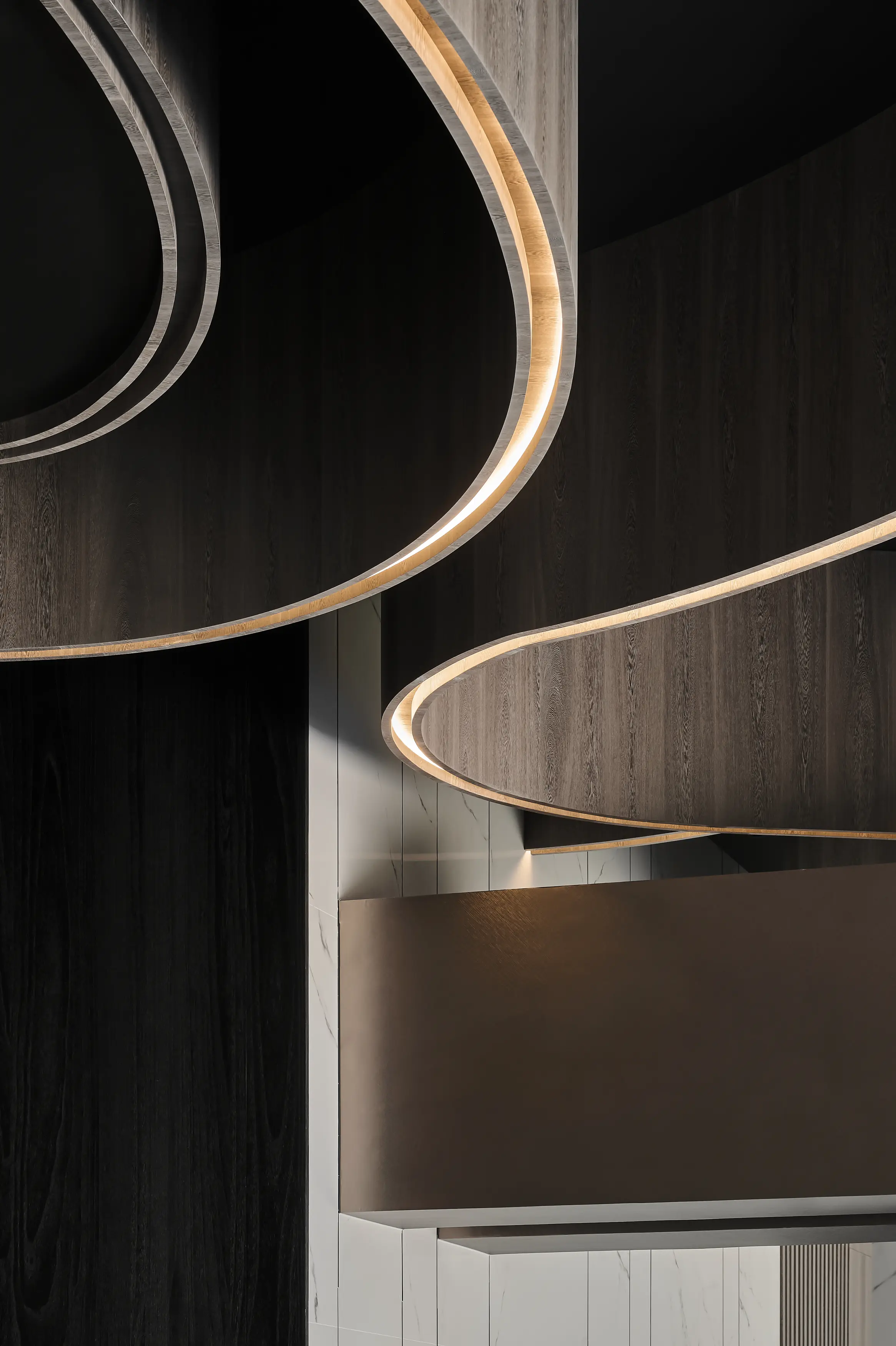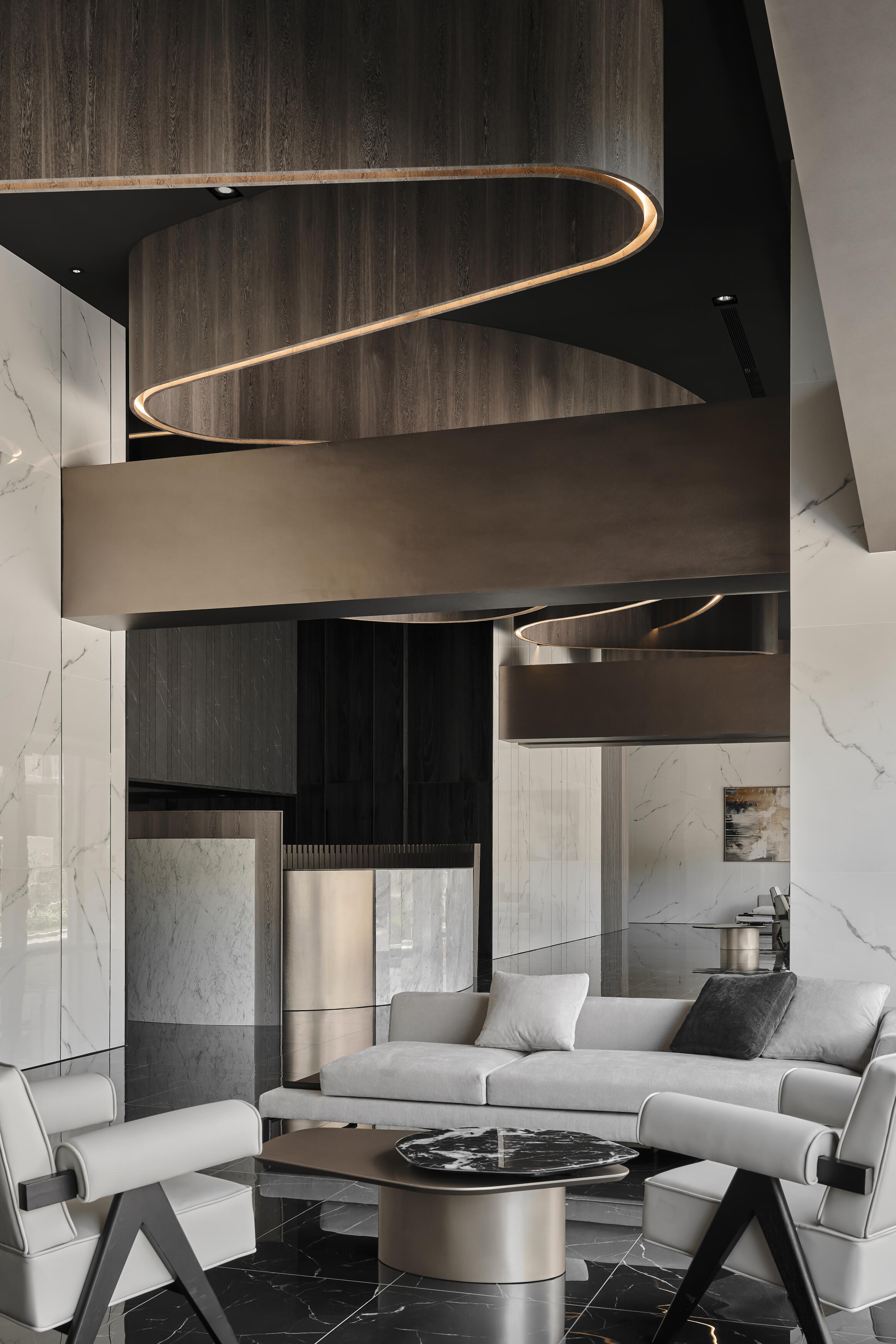 公設設計不僅是建築的門面,更是居住者相聚交流使用的場所,透過設計的巧思與得宜的動線安排,能為公共空間創造更高的價值,同時為住戶提升生活品質。我們以大自然為靈感,利用水、木、石等三種天然元素,精粹其曲柔、溫潤、質樸的意象,透過材質與形態,轉化為實體空間。