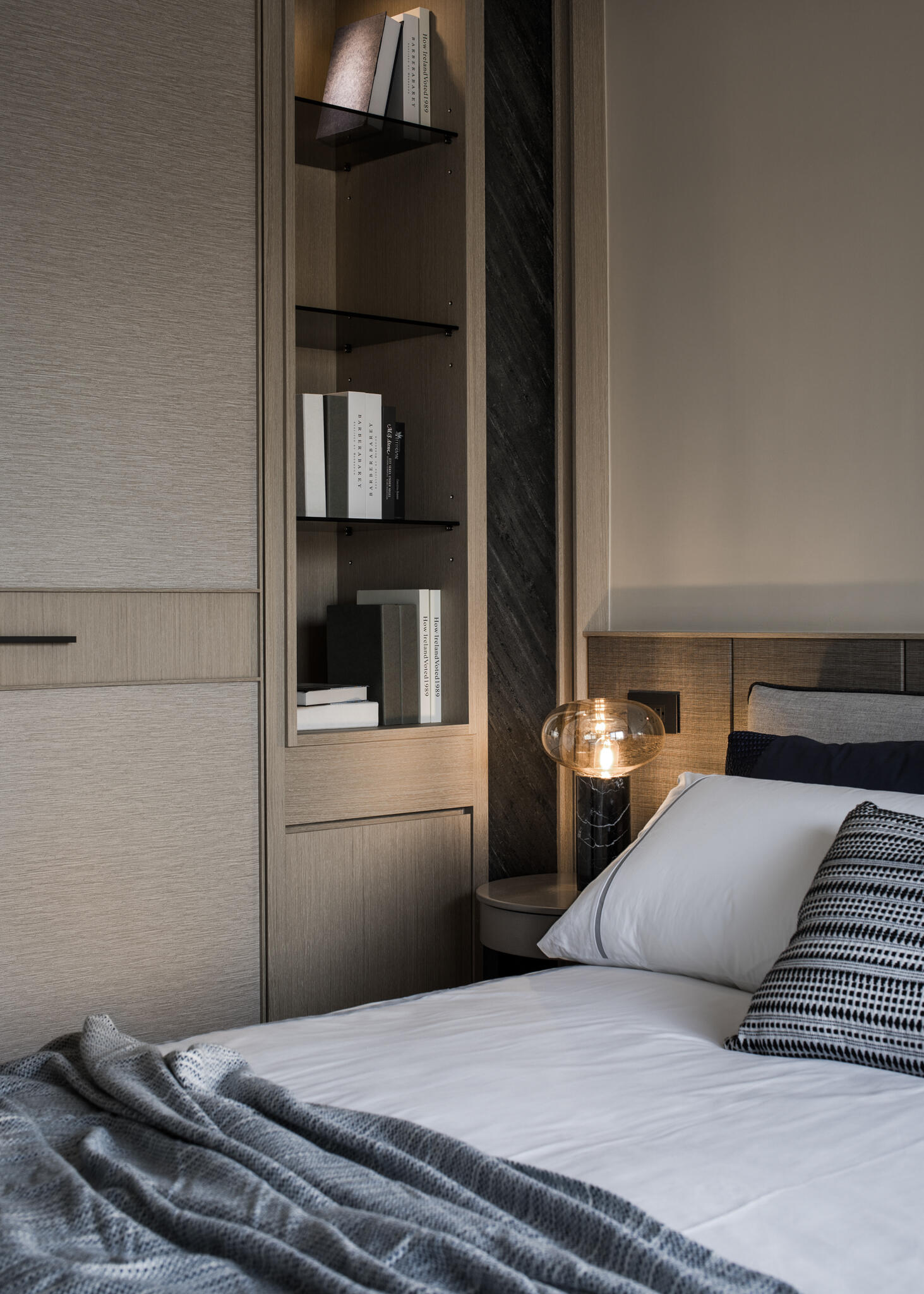 秉持屋主對俐落現代風格及沉穩調性的偏好,巧妙運用灰階色調搭配溫潤木皮,營造出雅致而內斂的居家氛圍。連貫的造型語彙,統一了整體空間的調性,而垂直與水平線條的運用,則精準突顯了現代設計的簡約俐落感,讓硬朗的現代線條中,不失細膩的溫度與情調。